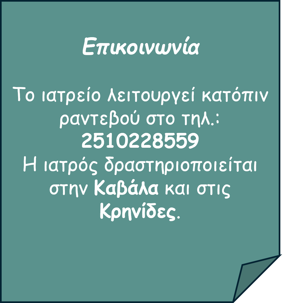Δραστηριοποιείται επαγγελματικά στο κέντρο της Καβάλας, επι της οδού Ομονοίας 26-28(Στοα Νοτη) και στις Κρηνίδες, επι της οδού 28ης Οκτωβρίου 75(Έναντι ΚΕΠ).